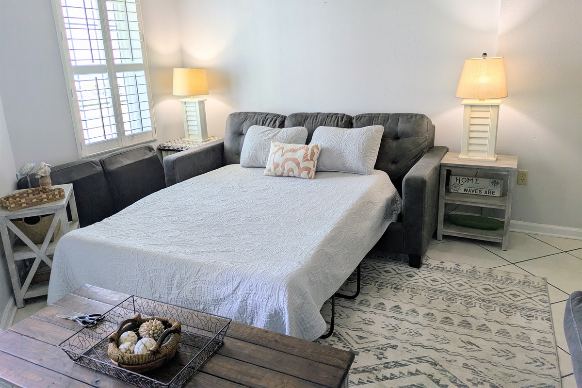 Sleeps 8 comfortably – King bed in the master, Queen bed upstairs, Hallway bunks + a queen-size sleeper sofa